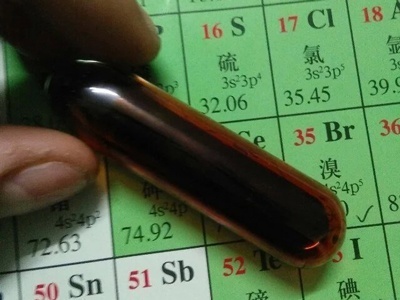 2020-04-10溴是唯一在室溫下呈現(xiàn)液態(tài)的非金屬元素,并且是周期表上在室溫或接近室溫下為液體的六個元素之一,深紅棕色發(fā)煙揮發(fā)性液體。有刺激性氣味,其煙霧能強烈地刺激眼睛和呼吸道。在空氣中迅速揮發(fā)。易溶于乙醇、乙醚、氯仿、二硫化碳、四氯化碳、濃鹽酸和溴化物水溶液,可溶于水。溴的熔點是-7.2 °C,而沸點是 58.8 °C。
